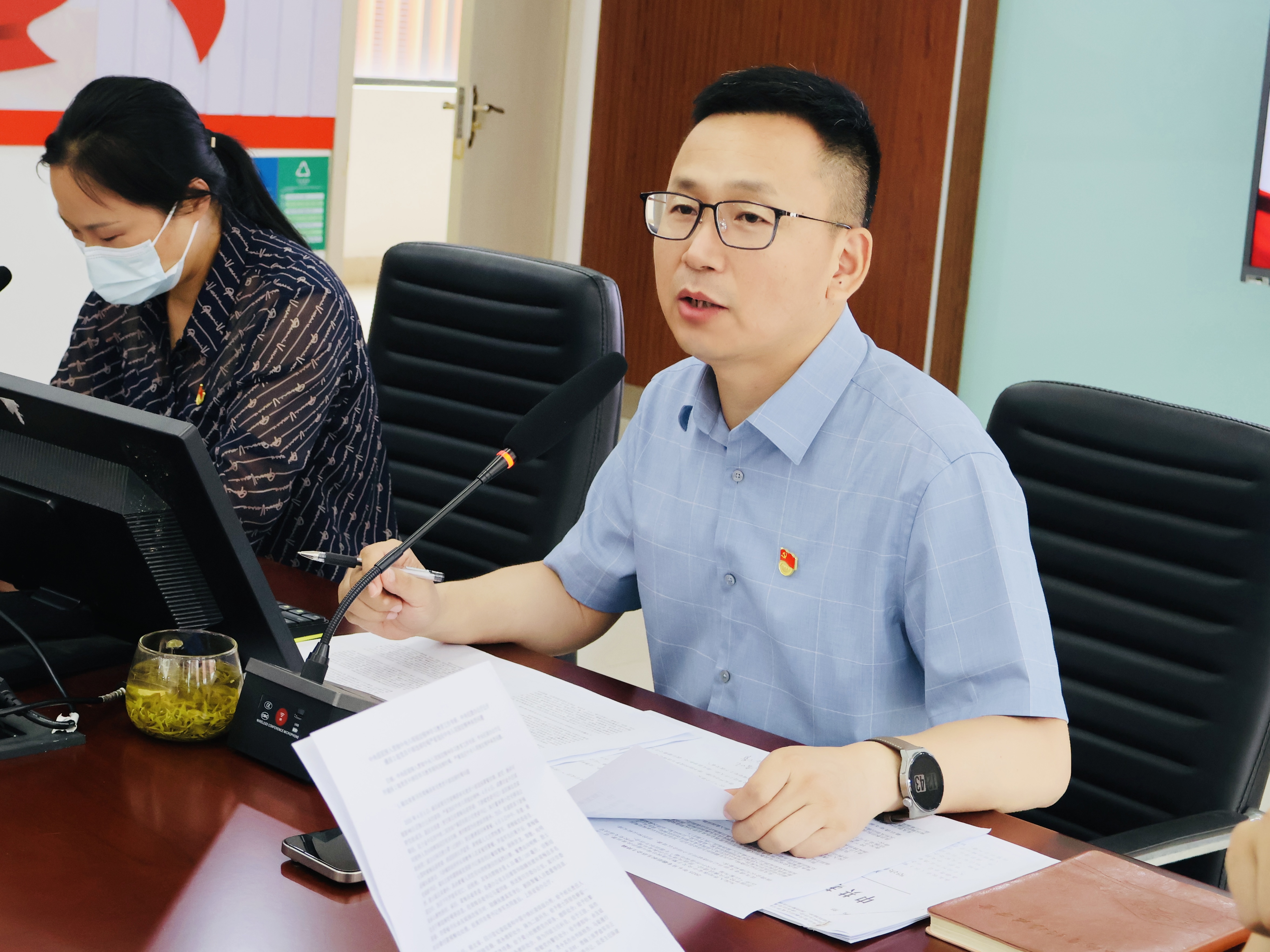 1. 党支部书记刘晓斌开场,介绍会议背景、目的和议程安排,强调会议纪律和要求。