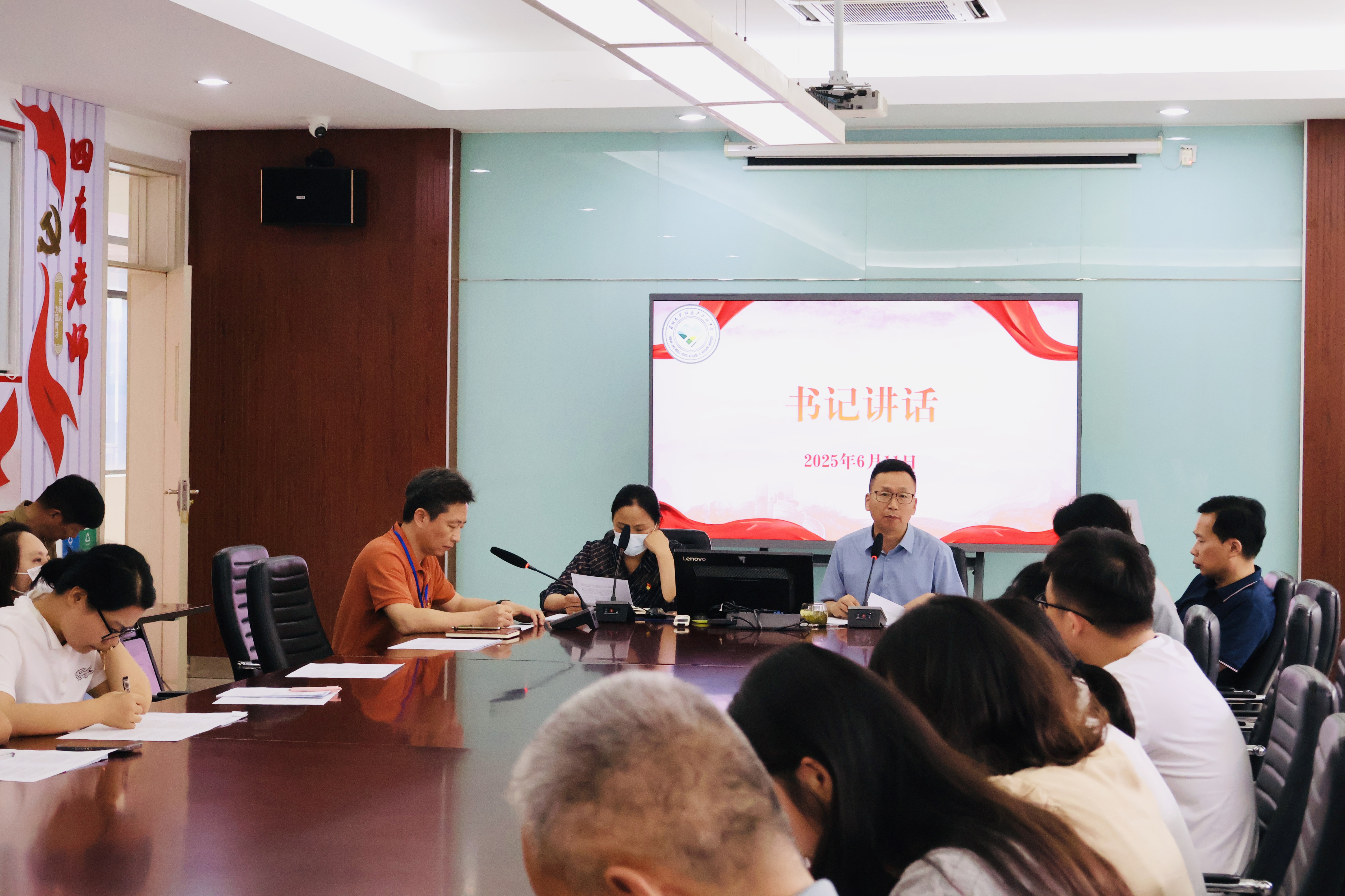4. 党支部书记刘晓斌总结点评,对党员教师的发言进行总结点评,肯定成绩,指出不足,并提出下一步工作要求和整改方向。