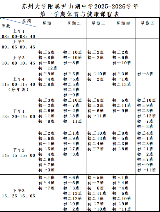 2025年体质健康测试情况及体育与健康总课表公示 来源: 发布时间:2026-02-03 08:48:14 浏览次数: 次 【字体:小 大】 根据《国务院关于实施健康中国行动的意见》(国发〔2019〕13 号)要求,从2020年起,各学校每年公示学生体质健康总体的优秀率、良好率、合格率和近视率,现将我校2025年本校学生体质健康数据总体情况和2025年体育与健康总课程表公示如下: 分享到: 【打印正文】